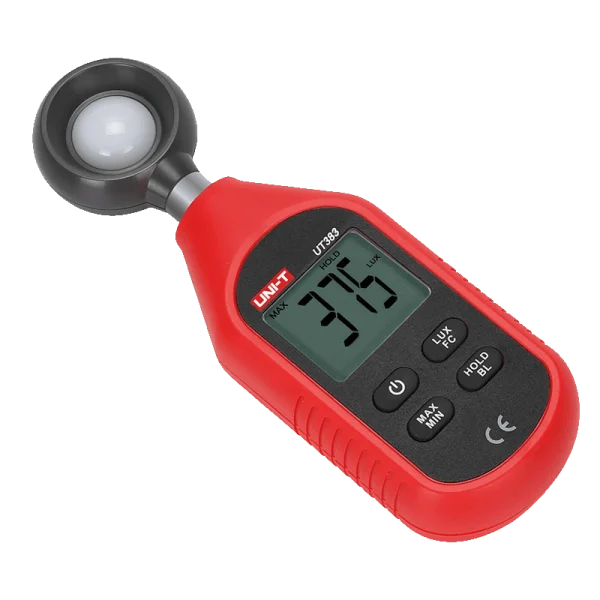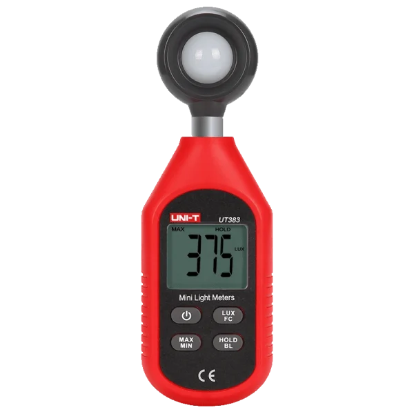 מד אור קומפקטי ומדויק למדידת עוצמת תאורה ביחידות Lux או FC. מאפשר שמירת נתונים, הצגת ערכי מינימום ומקסימום, ותפעול פשוט ונוח. דגם UT383 כולל יכולת חיבור לבלוטות’ והעברת נתונים לאפליקציית iENV לניתוח ואחסון מתקדם. מתאים לשימוש מקצועי וביתי במפעלים, מעבדות, משרדים, חקלאות ותאורת רחוב.