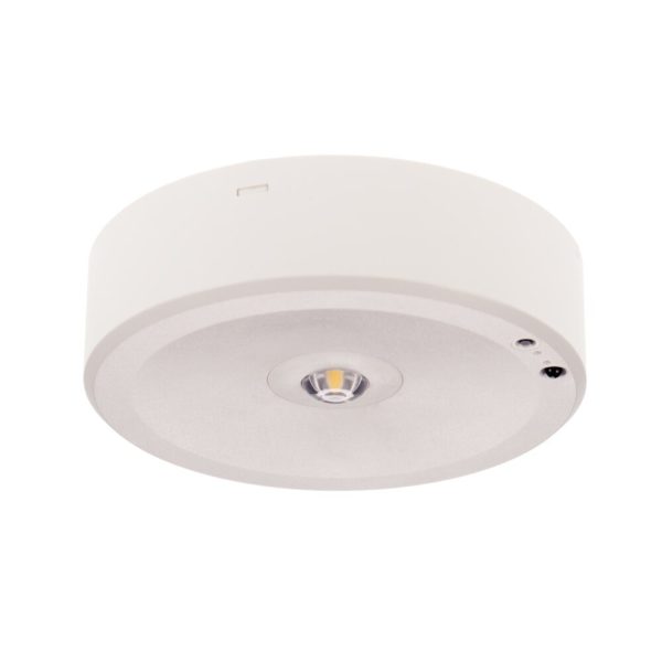 תאורת חירום עגולה חד תכליתית צמודת תקרה, בהתאם לתקן 1838. כוללת יחידת בקרה עצמאית לחלוטין לבדיקות שבועיות ושנתיות, חיווי באמצעות נורית LED ולחצן טסט ייעודי. מספקת פעולה בחירום למשך כ־180 דקות ומתאימה לנתיבי מילוט, מסדרונות, בתי מלון, משרדים ומגדלי מגורים.
