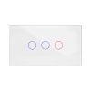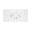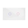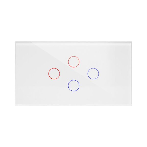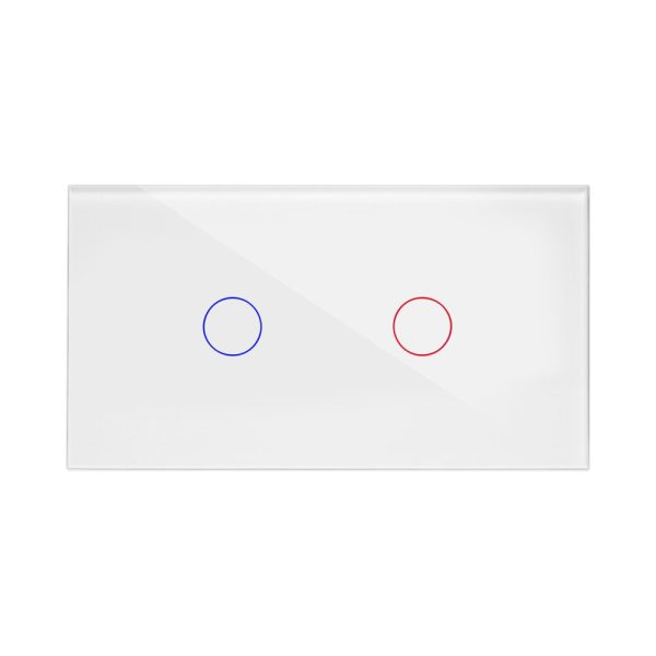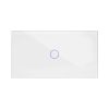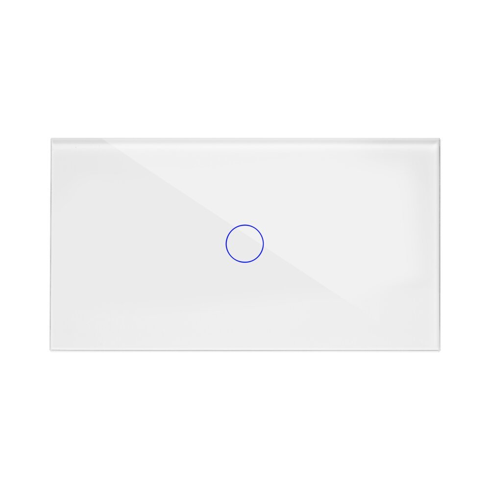 מתג חכם לתאורה, בעיצוב מודרני ונקי בגימור לבן. מתאים להתקנה תחת הטיח ולמסגרות סטנדרטיות לקופסה מלבנית. משלב זכוכית מחוסמת ופוליקרבונט איכותי לנראות יוקרתית ועמידות לאורך זמן.