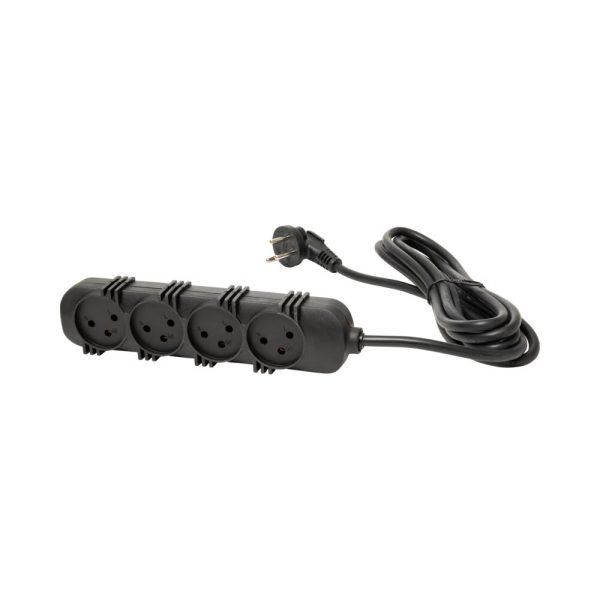 רב שקע נייד לשימוש במקומות ללא נקודת חשמל זמינה. כולל שקעים על פאנל אחד, גוף בלתי שביר מפוליקרבונט וכבל יצוק עם תקע בקצהו.