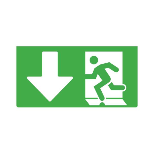 שילוט חירום מותאם לשלט יציאה דו תכליתי בהספק 3W, כולל חץ ישר למטה. עומד בדרישות ת״י 1838 עם גובה אות תקני של 15 ס״מ. מתאים למבנים מסחריים, חניונים, משרדים ומוסדות ציבור.