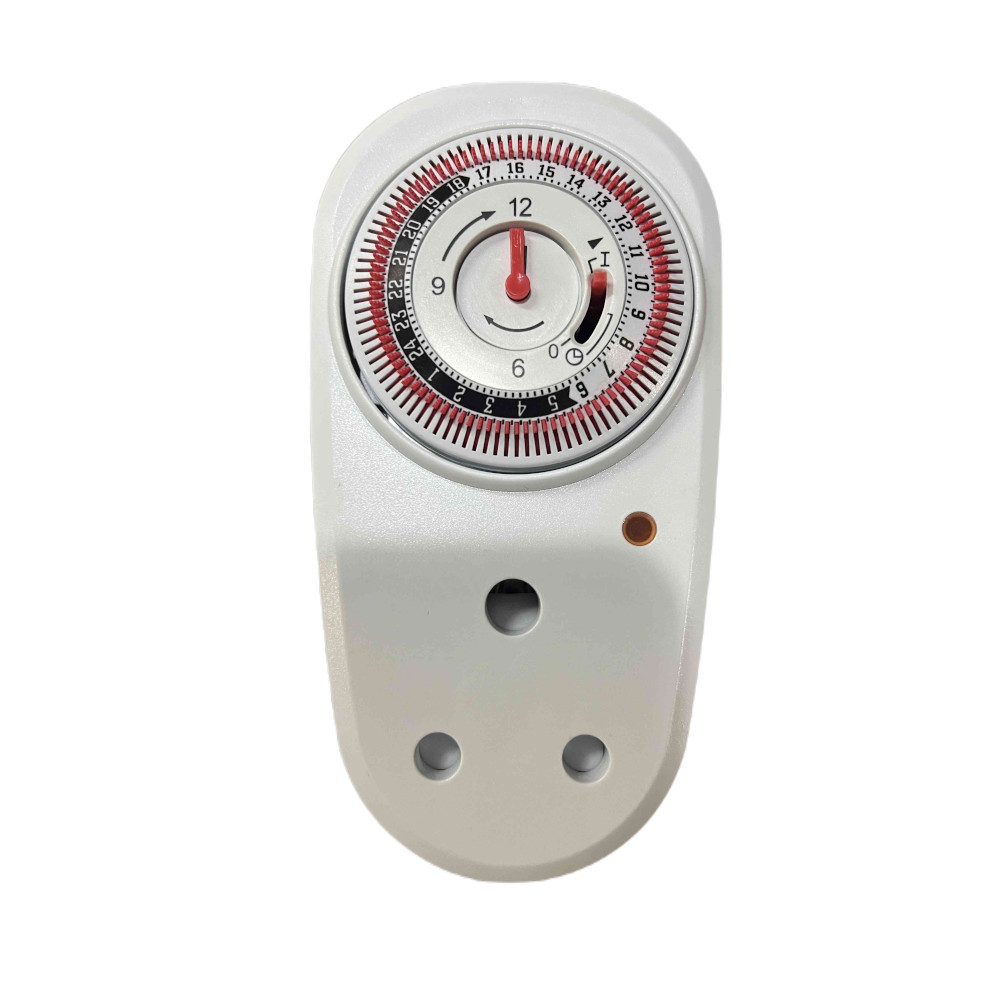 שעון 24 שעות תקע שקע למזגן, מיועד להפעלה מבוקרת של מזגנים דרך שקע ישראלי. בנוי מחומרים חזקים, חסין אש, בלתי שביר ועמיד ל־UV.