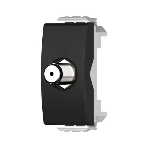 שקע טלוויזיה TV קואקס מסדרת ניסקו סוויץ’, כולל מחבר נקבה F-TYPE בחזית ומחבר M זכר לחיבור הכבל בקיר. החיבור נעשה בהברגה פשוטה, ללא צורך בכלים, ומתאים לחיבור טלוויזיה או ממיר לכבלים ולוויין.