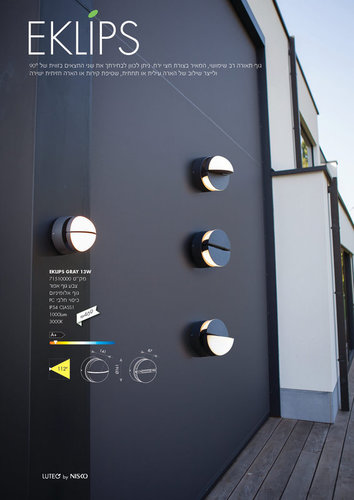 גוף תאורה צמוד קיר של חברת LUTEC מבית ניסקו, גוף תאורה רב שימושי, המאיר בצורת חצי ירח. ניתן לכוון לבחירתך את שני החצאים בזווית של 90° ולייצר שילוב של הארה עילית או תחתית, שטיפת קירות או הארה חזיתית ישירה. הגוף תאורה צמוד קיר מיוצר מיציקת אלומיניום בצבע אפור כהה וכיסוי פוליקרבונט בגוון אור חם. התקנה נוחה וקלה, אידיאלי להתקנה בהיקפי מבנה, כניסות, מרפסות, גינות, מבואות, ועוד. לחץ כאן לקובץ PDF לסדרת המוצר ולמידע טכני.